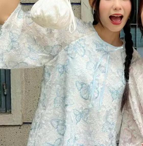 XANH DƯƠNG - Áo dài voan tơ khảm lông vũ HỒNG ĐIỆP chất lượng